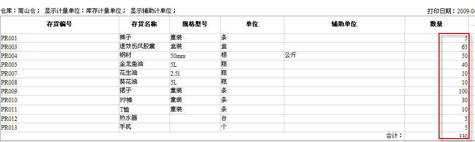 - 在引出的盘点表中,增加实存数量列,并在石村数量列中录入实存数量。